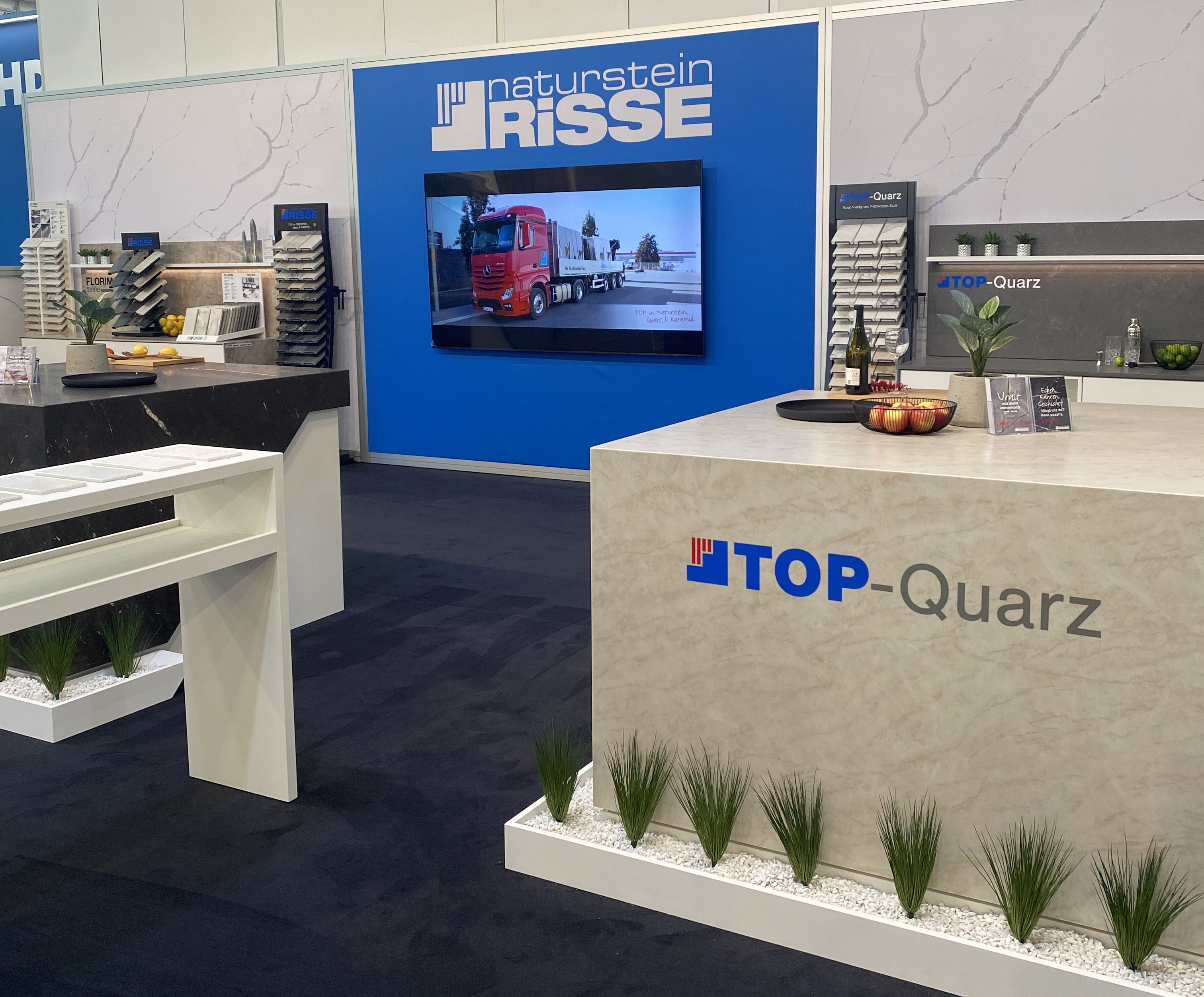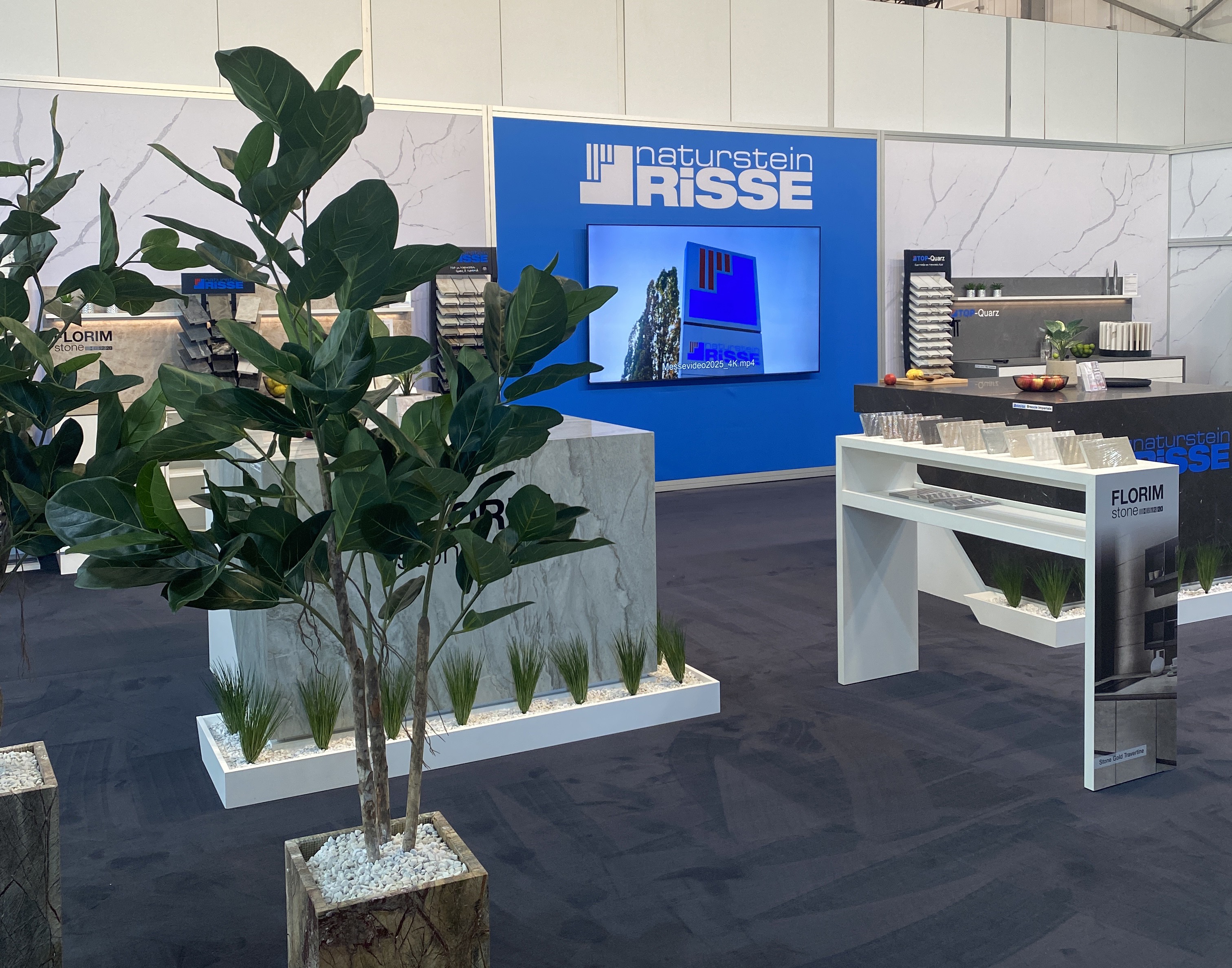 Als Naturstein-Großhandel hatten wir die Gelegenheit, unser aktuelles Naturstein Sortiment, sowie die Neuheiten unserer Engineered Stone Markenpartner FLORIM stone, Caesarstone und Top-Quarz direkt am Stand zu präsentieren.