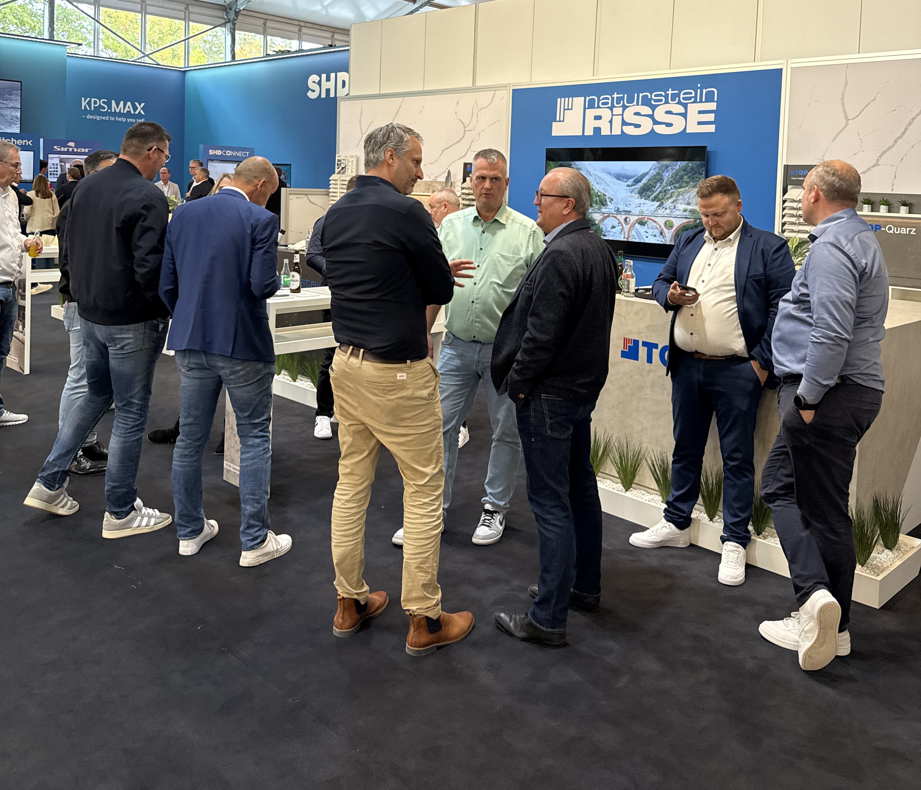 Besonders stolz waren wir darauf, Exponate zu zeigen, die von unseren Kunden gefertigt wurden. So konnten Besucher die Vielseitigkeit und die hochwertige Verarbeitungsqualität unserer Materialien aus erster Hand erleben – von eleganter Marmor-Optik über robuste Quarzsteine bis hin zu exklusiven Naturstein-Verkleidungen für Küchenbereiche.
