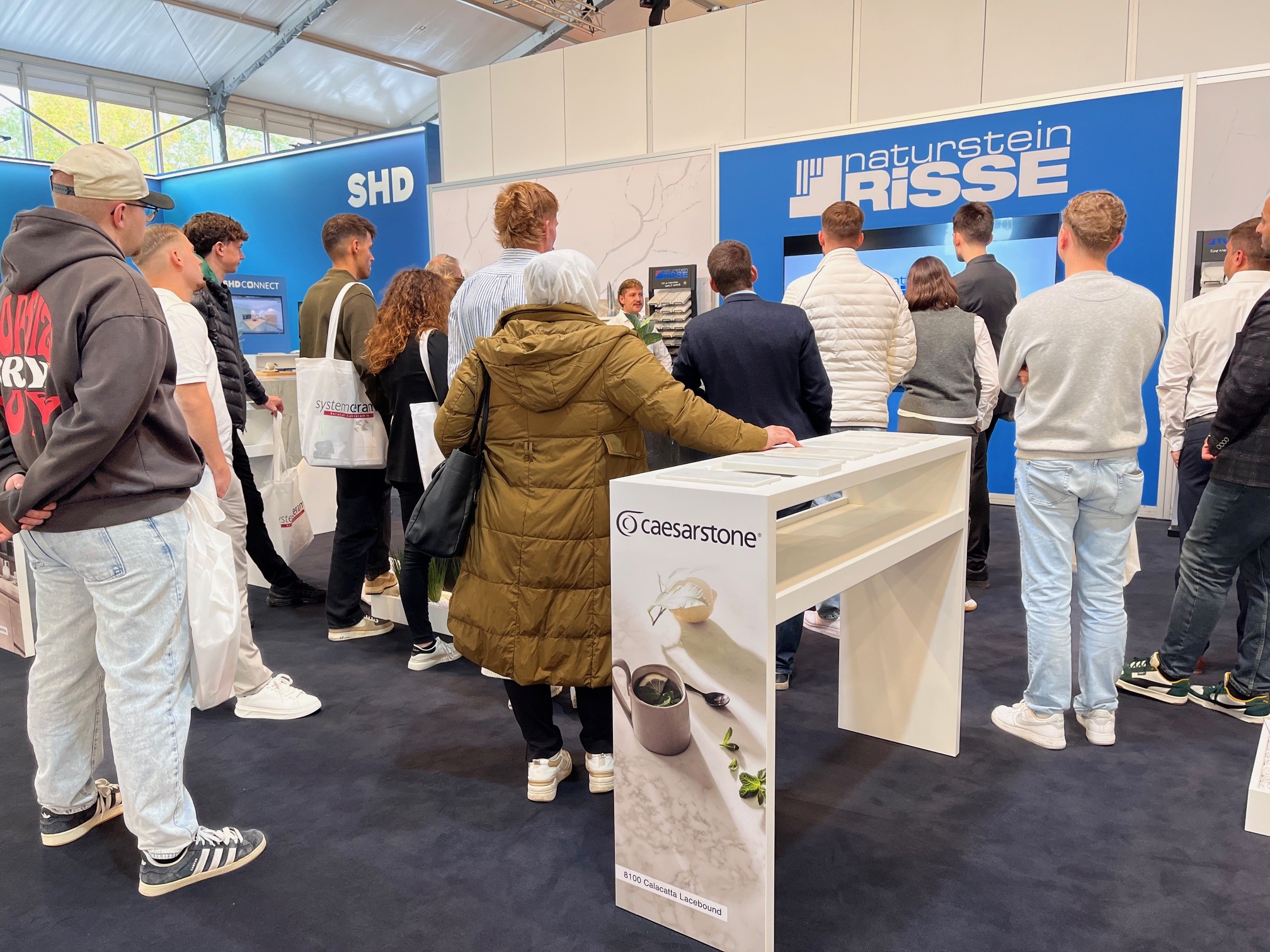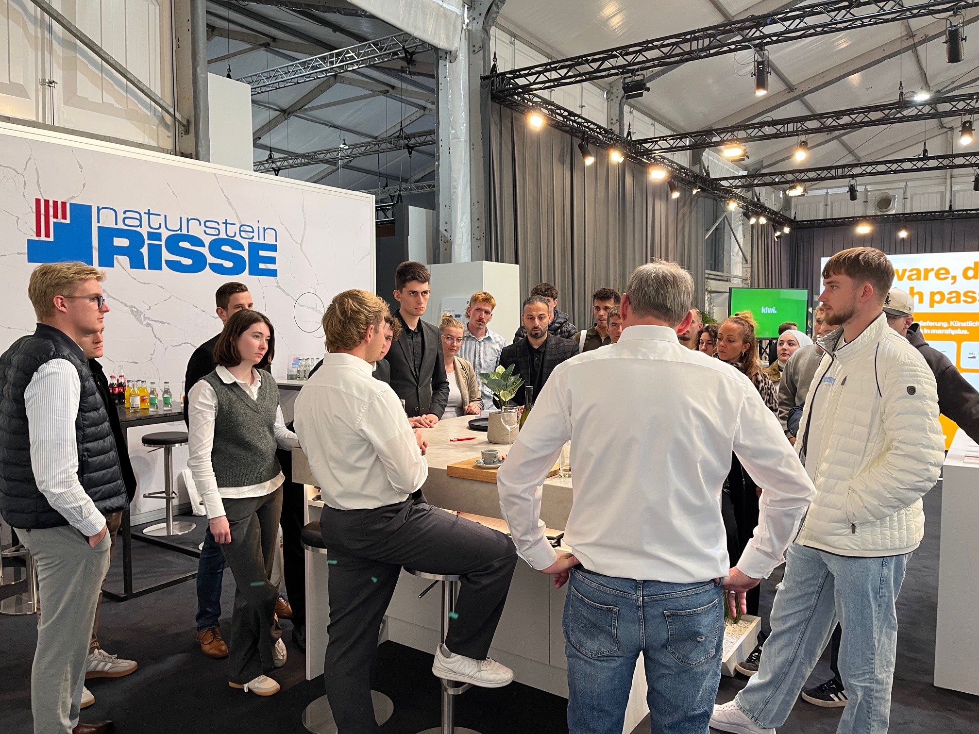 Zusätzlich hatten wir am Donnerstag die besondere Gelegenheit, Studierende der Möbelfachschule aus Köln an unserem Messestand willkommen zu heißen. Es war uns eine Freude, ihnen unsere Vielfalt an Natursteinen vor Ort zu zeigen, reale Anwendungsbeispiele zu präsentieren und Einblicke in Zusammensetzungen, Oberflächen und Materialeigenschaften zu vermitteln.