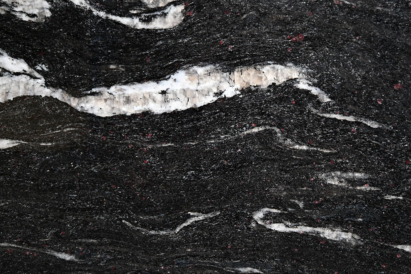 Cosmic Black ist ein dunkler Granit aus Brasilien, der durch seine schimmernden Einschlüsse in weiß, grau und Naturtönen sehr besonders und edel wirkt. Der Kontrast kommt auf dem dunkelgrau bis tiefschwarzen Hintergrund ausgezeichnet zur Geltung. Elegant und gleichzeitig lebhaft verschönert Cosmic Black Flächen im Innen- und Außenbereich.