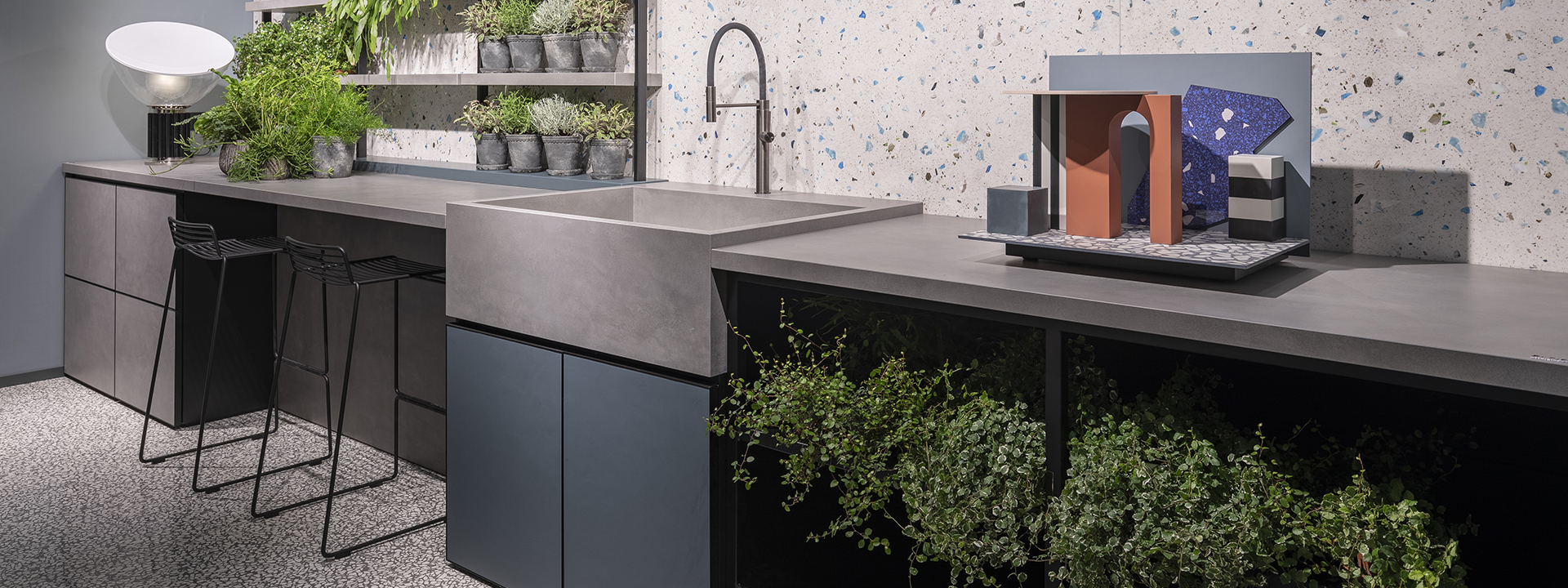 Moderner Minimalismus in dunkelgrau. Für diejenigen, die wesentliches Design lieben und die Sicherheit und Funktionalität von Feinsteinzeug suchen. Wir halten FLORIMstone Cement Dark Gray Unmaßplatten in 6, 12 und 20 mm Stärke für Sie am Lager vorrätig.