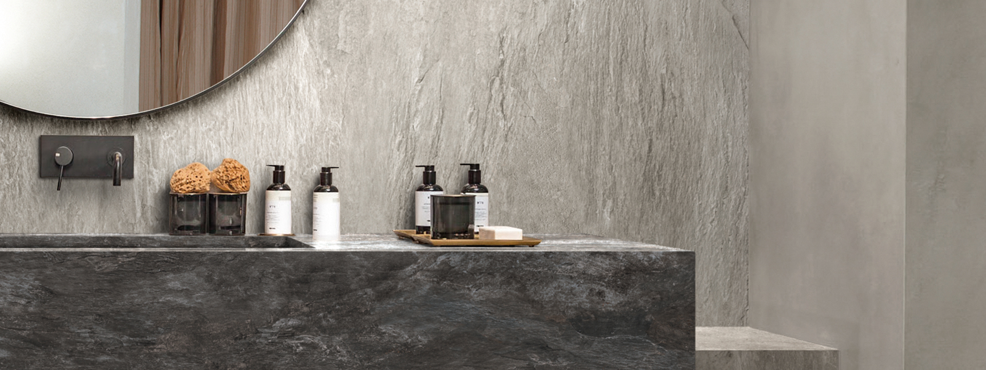 FLORIMstone Stone Noir empfindet die Struktur eines schwarzen Natursteins nach. Wir haben an unserem Lager FLORIMstone Stone Noir Unmaßplatten in den Stärken 6 mm und 12 mm und der Oberflächen matte für Sie vorrätig.
