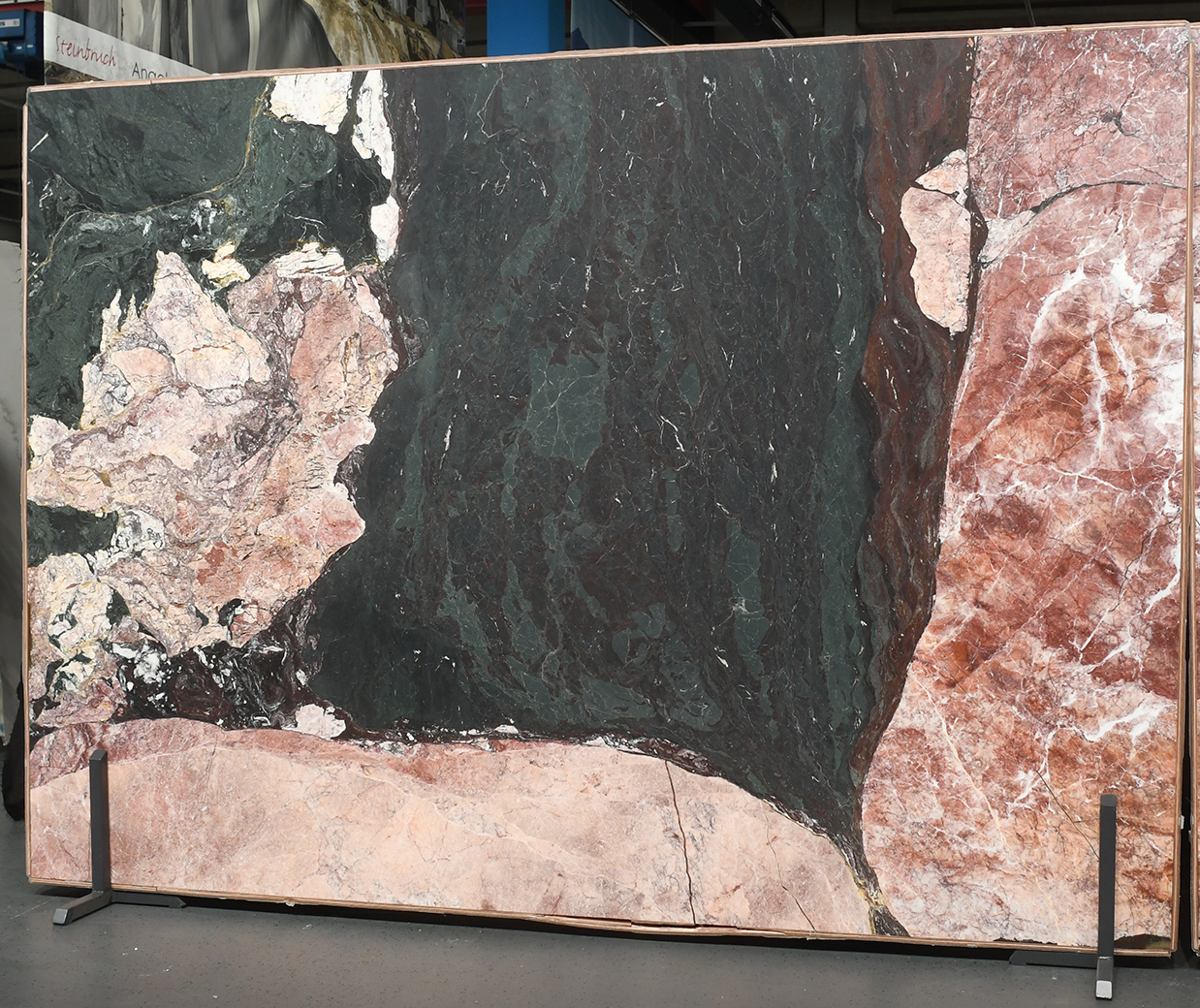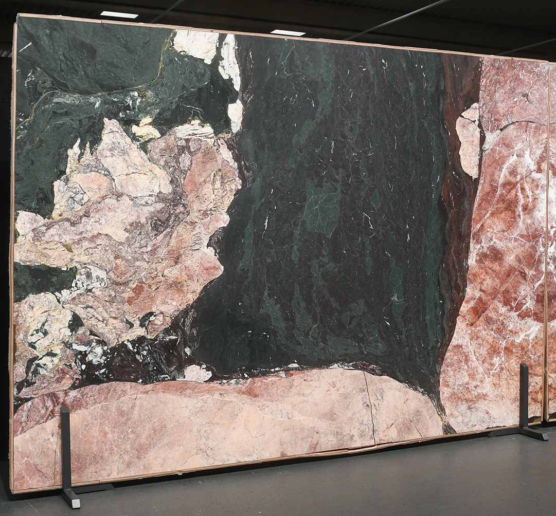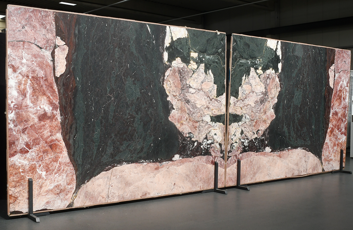 Four Seasons ist ein einzigartiger Marmor aus China, der durch seine grüne Grundfarbe und die markanten hellen sowie roséfarbenen Flächen überrascht. Die Mischung aus frischem Grün, hellen Akzenten und zarten Rosatönen verleiht dem Stein eine lebendige, fast naturgegebene Tiefenwirkung, die je nach Lichteinfall sanft schimmert. Als Bookmatch ist dieses Material wirklich ein echter Hingucker. Die symmetrische, gespiegelt Optik setzt Four Seasons eindrucksvoll in Szene und eignet sich hervorragend für stilvolle und exklusive Projekte im Wohnbereich.