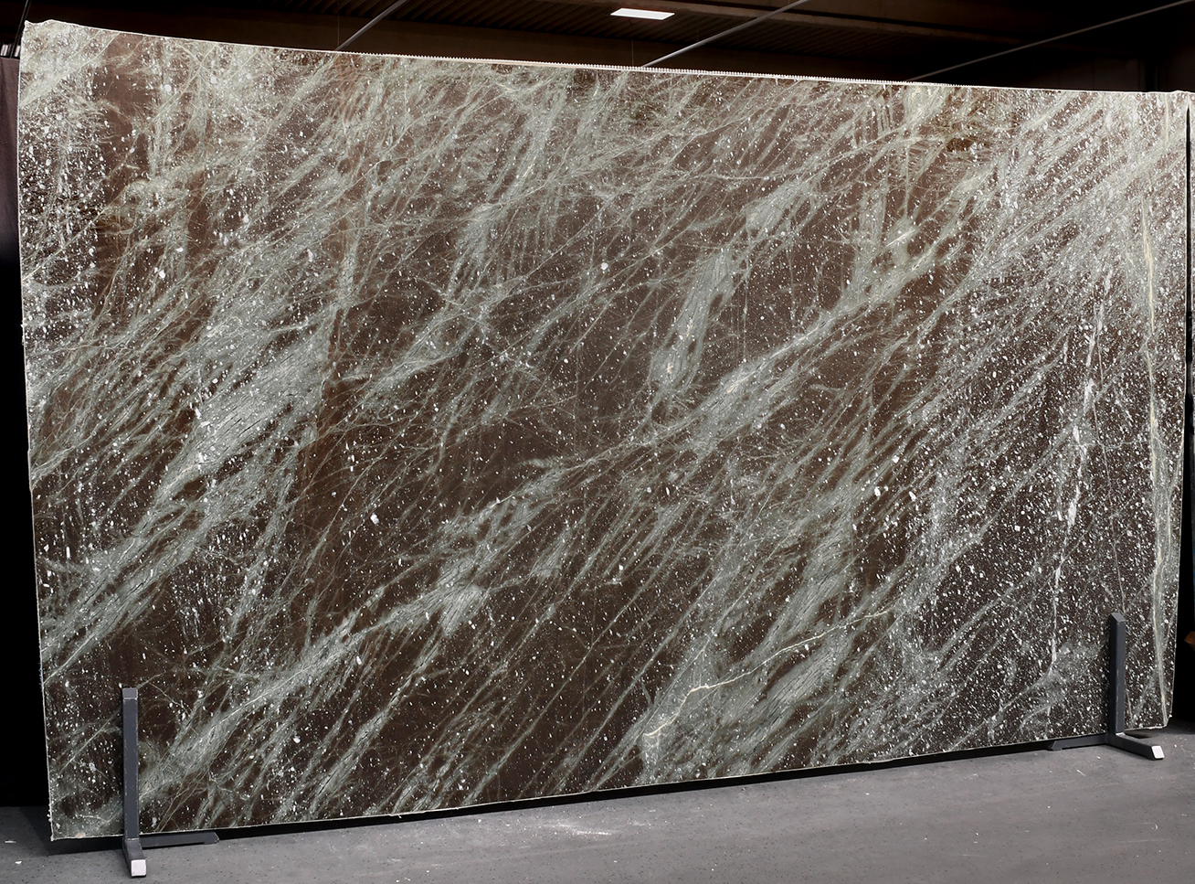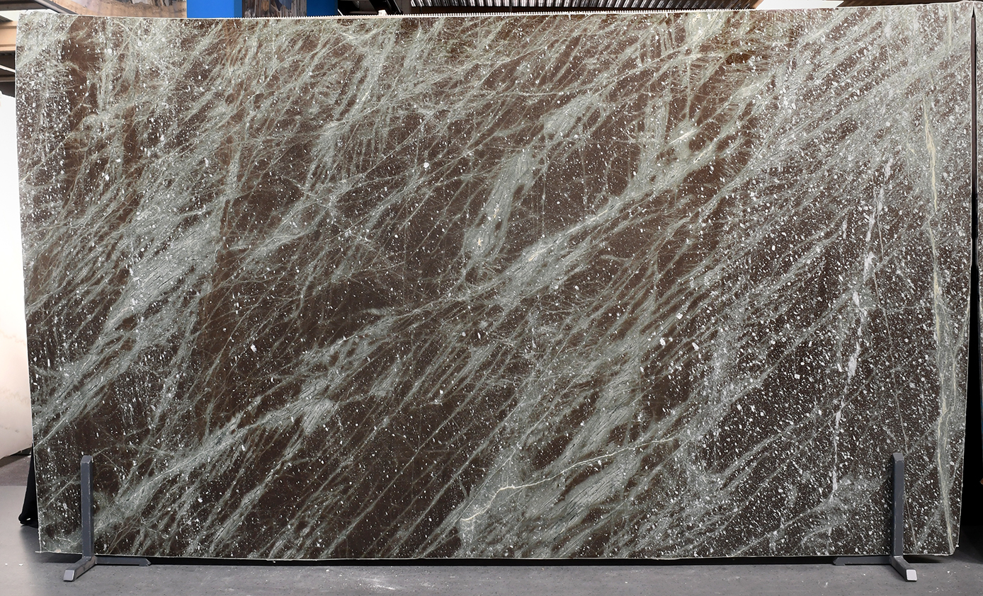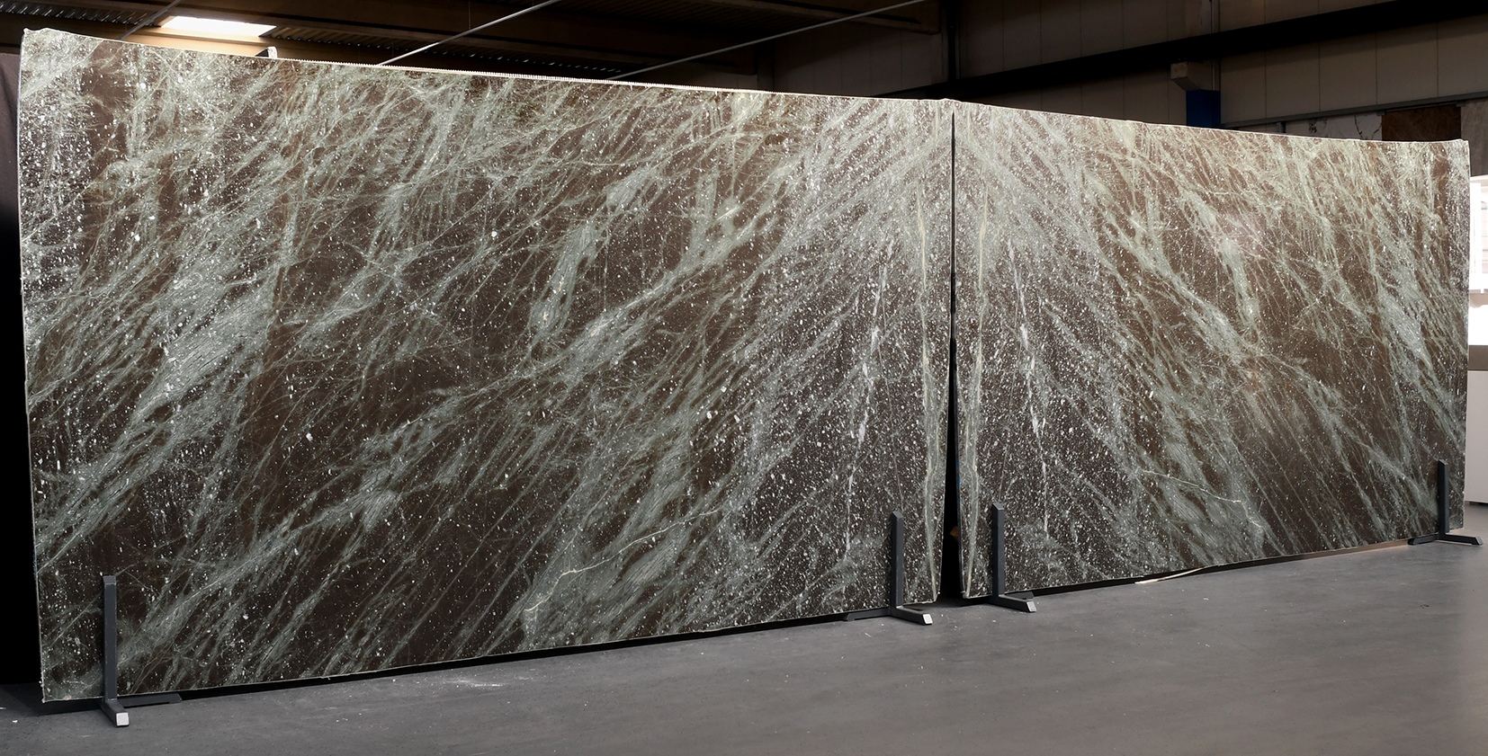 Green Galaxy ist ein dunkelgrüner Quarzit aus Brasilien mit auffälligen hellen weißen Linien und Sprenkeln, die an eine kosmische Galaxie erinnern. Die besondere Musterung vermittelt Tiefe und strahlt zeitlose Eleganz aus. Green Galaxy eignet sich vielseitig für Küchen, Badbereiche sowie Wandverkleidungen. In Küchen überzeugt es als Arbeitsplatte oder Inseloberfläche durch seine robuste Struktur.