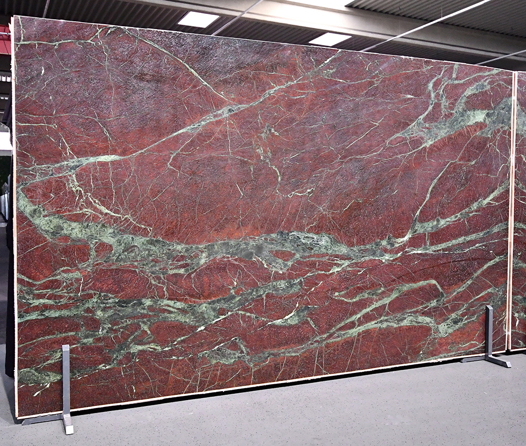 Moulin Rouge ist ein hochwertiger, roter Quarzit aus Brasilien, der durch seine kräftige Farbgebung und markanten grünen Adern besticht. Seine lebendige Optik verleiht jeder Oberfläche einen exklusiven Charakter. Der Naturstein eignet sich besonders für anspruchsvolle Innenraum-Anwendungen wie Arbeitsplatten, Wandverkleidungen oder dekorative Flächen und verbindet ausdrucksstarkes Design mit hoher Funktionalität.