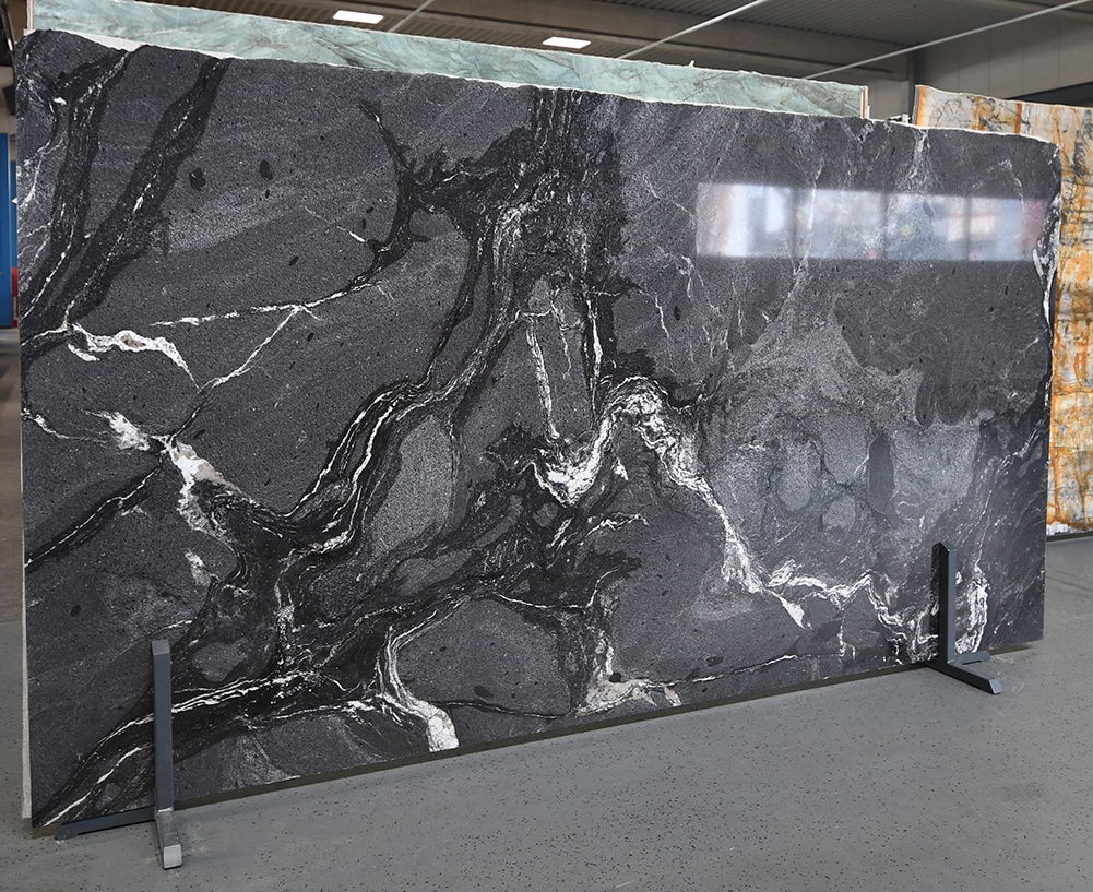 Nero Vagli ist ein exklusiver Granit, der aus Spanien stammt. Er hat einen tiefschwarzen Grundton mit weißen verspielten Adern und Einschlüssen. Nero Vagli zeichnet sich durch seine einzigartige Struktur aus und wirkt dadurch besonders elegant. Er eignet sich ideal als Küchenarbeitsplatte oder als Wand- und Bodenverkleidung im Innen- und Außenbereich.