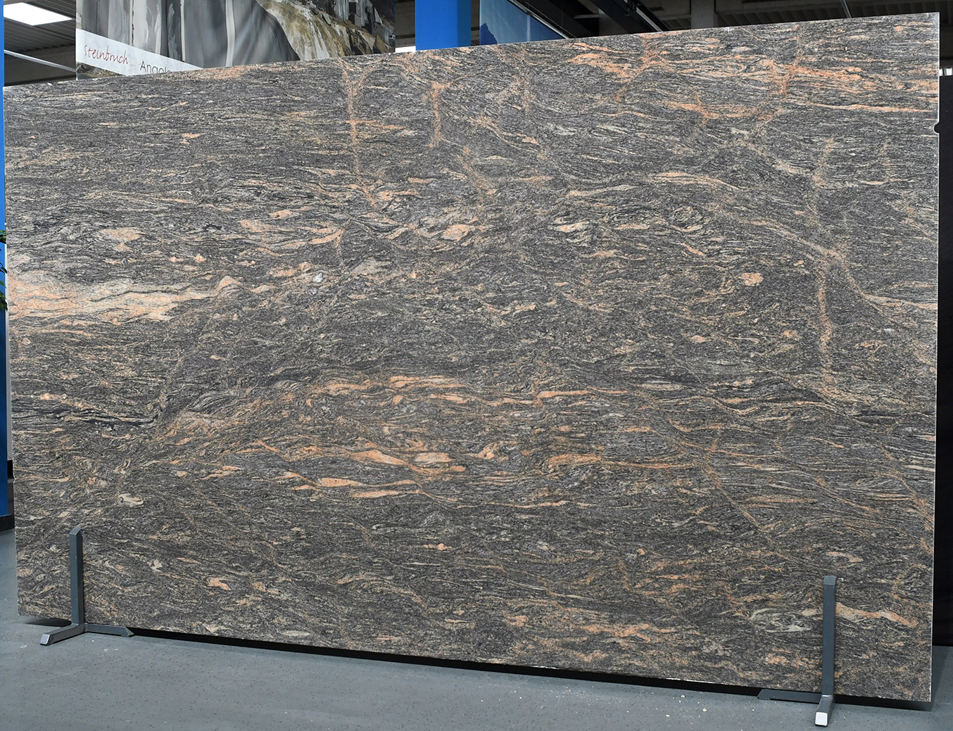 Paradiso Bash erinnert an fein gemusterte Dünenlandschaften. Das Zusammenspiel von weichen Formen und kontrastreichen Farben verleiht diesem Stein seinen unverwechselbaren Charakter.