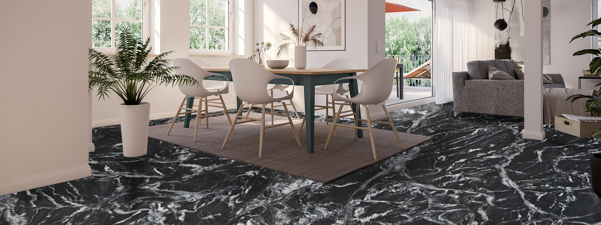 Silver Paradiso ist ein einzigartiger Granit, der sich durch einen intensiven schwarzen Hintergrund mit weißen Adern auszeichnet. Dieses Material eignet sich perfekt für Küchenarbeitsplatten, Waschtische oder Verkleidungen im Innen- und Außenbereich.