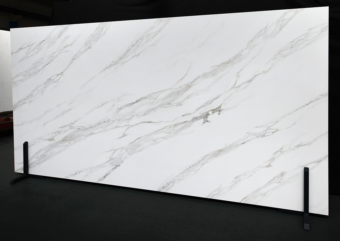 Calacatta Oro überzeugt durch ein edles Aussehen mit warmen goldenen Adern. Dieses Materialien ist kratzfest, schmutzabweisend, langlebig und pflegeleicht und eignen sich daher hervorragend als Küchen- und Waschtischplatte oder als Boden- und Wandbelag.